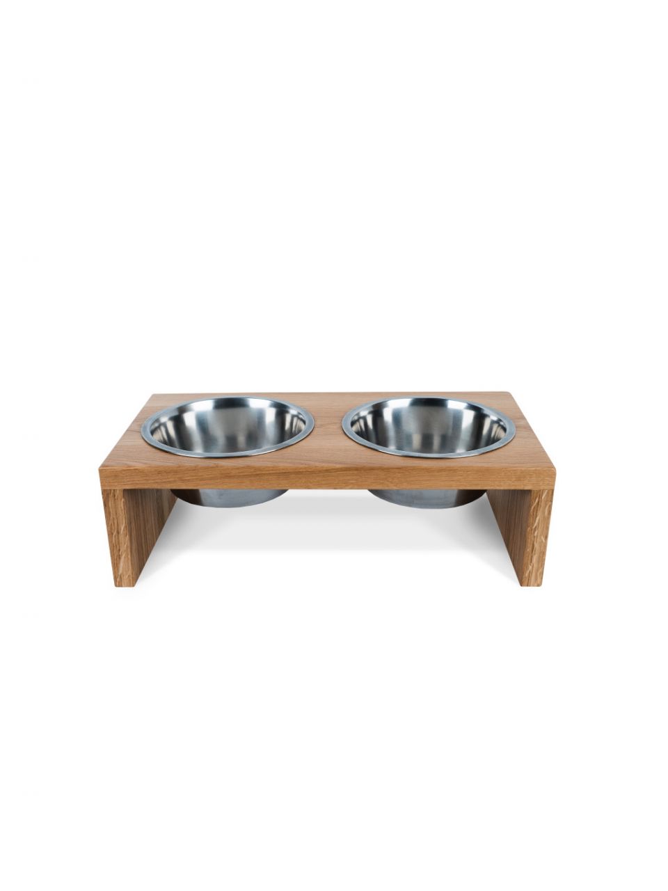 An elegant wooden stand for two stainless steel bowls, combining practicality and style. The removable bowls are dishwasher safe, and thanks to special seals, they sit firmly, quietly, and safely without scratching the wood. The stand’s surface is protected with a high-quality German lacquer meeting the highest safety standards. For extra durability, the stands are coated twice – simply wipe with a damp cloth and it looks like new.